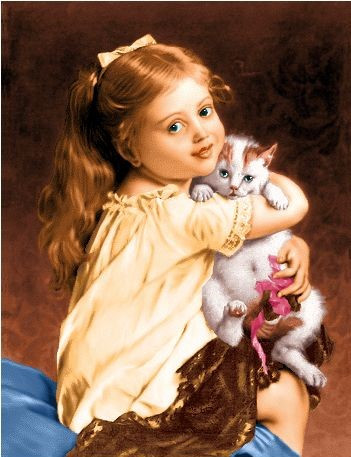 نخ و نقشه تابلو فرش طرح گلارا و بچه گربه (کد H5-35) فرانسوی