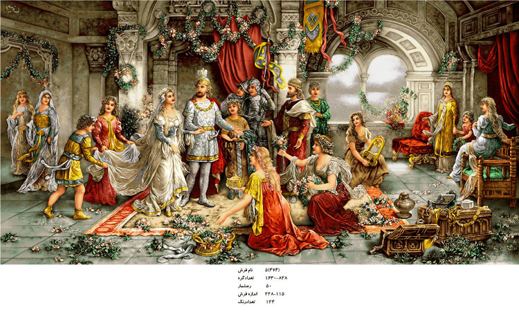 نخ بکار رفته در تولید نخ و نقشه این طرح از نخ مرینوس 2 لای درجه 1 میباشد .که دارای بالاترین درجه کیفی از جهت رنگ پذیری و عدم رنگ دهی نخ بعد از رنگرزی را داراست و همچنین ابریشم ها بصورت ابریشم بافت طبیعی است.