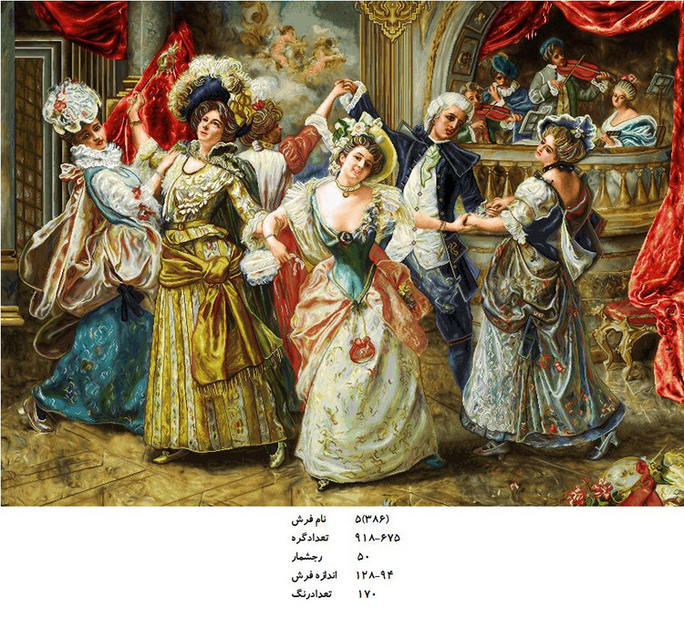 نخ بکار رفته در تولید نخ و نقشه این طرح از نخ مرینوس 2 لای درجه 1 میباشد .که دارای بالاترین درجه کیفی از جهت رنگ پذیری و عدم رنگ دهی نخ بعد از رنگرزی را داراست و همچنین ابریشم ها بصورت ابریشم بافت طبیعی است.