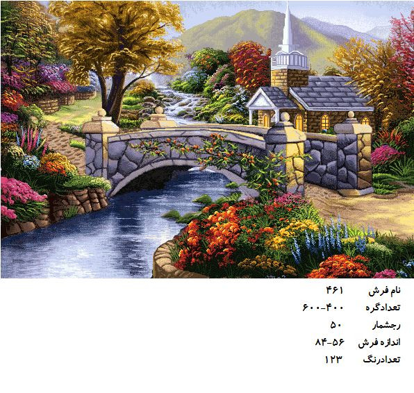 نخ و نقشه تابلو فرش طرح کلبه و پل سنگی(کد A 4611)