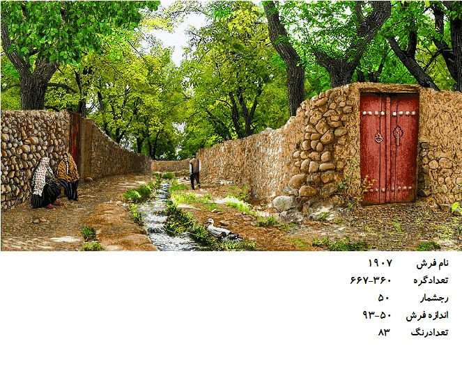 نخ و نقشه تابلو فرش طرح کوچه باغ تابستانی در قرمز (کد A19-077)