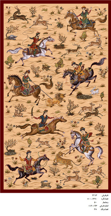 نخ بکار رفته در تولید نخ و نقشه این طرح از نخ مرینوس 2 لای درجه 1 میباشد .که دارای بالاترین درجه کیفی از جهت رنگ پذیری و عدم رنگ دهی نخ بعد از رنگرزی را داراست و همچنین ابریشم ها بصورت ابریشم بافت طبیعی است.