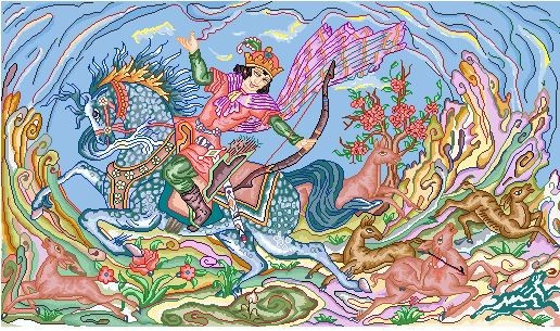 نخ و نقشه تابلو فرش طرح شکارگاه (کد A25-022)