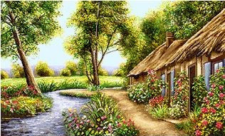 نخ و نقشه تابلو فرش طرح کلبه حومه شهر (کد A735)