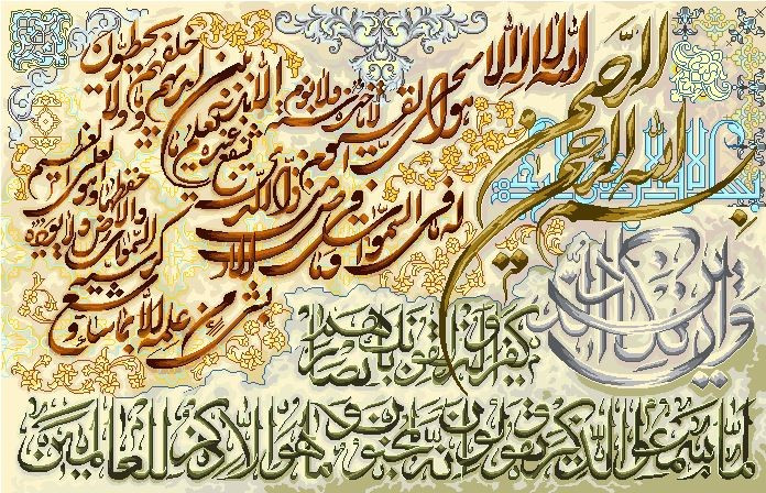 نخ و نقشه تابلو فرش طرح ان یکاد آیت الکرسی زمینه کرم (کد A254)