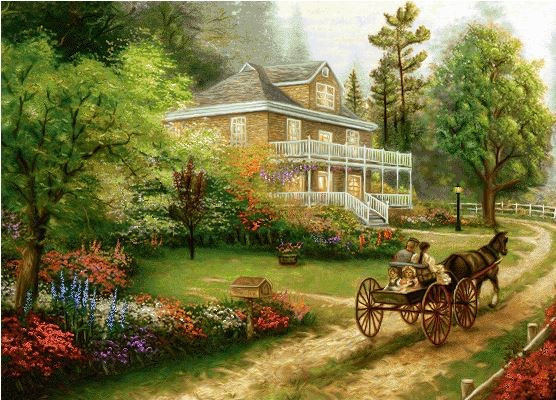 نخ و نقشه تابلو فرش طرح یکشنبه در اپل هیل (کدA8111) اثر توماس کینکید
