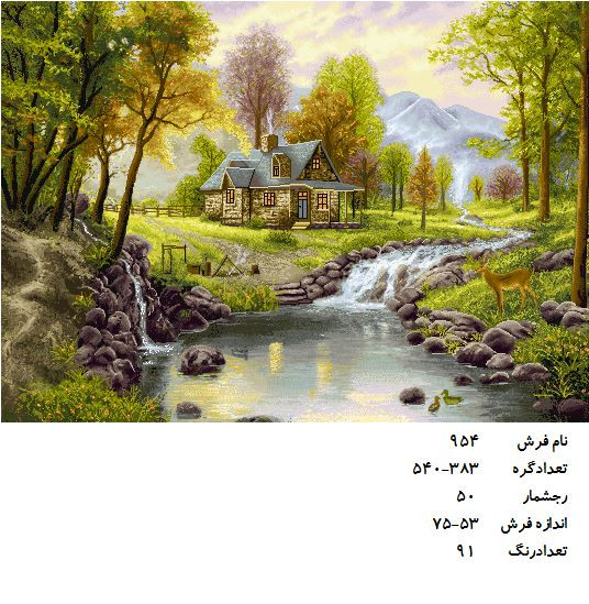 نخ و نقشه تابلو فرش طرح منظره رودخانه و کلبه (کد A9544)
