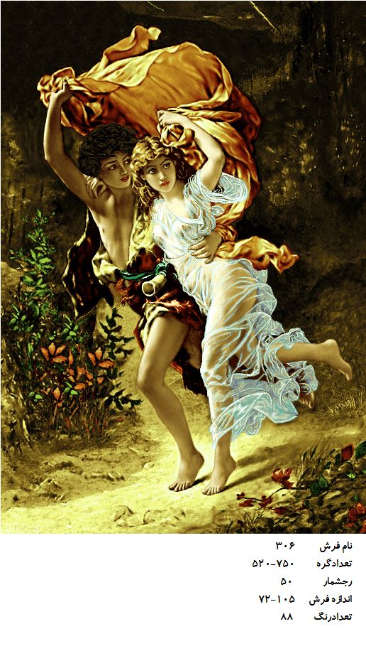 نخ بکار رفته در تولید نخ و نقشه این طرح از نخ مرینوس 2 لای درجه 1 میباشد .که دارای بالاترین درجه کیفی از جهت رنگ پذیری و عدم رنگ دهی نخ بعد از رنگرزی را داراست و همچنین ابریشم ها بصورت ابریشم بافت طبیعی است.