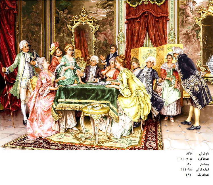 نخ بکار رفته در تولید نخ و نقشه این طرح از نخ مرینوس 2 لای درجه 1 میباشد .که دارای بالاترین درجه کیفی از جهت رنگ پذیری و عدم رنگ دهی نخ بعد از رنگرزی را داراست و همچنین ابریشم ها بصورت ابریشم بافت طبیعی است.