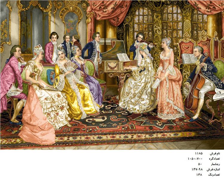 نخ بکار رفته در تولید نخ و نقشه این طرح از نخ مرینوس 2 لای درجه 1 میباشد .که دارای بالاترین درجه کیفی از جهت رنگ پذیری و عدم رنگ دهی نخ بعد از رنگرزی را داراست و همچنین ابریشم ها بصورت ابریشم بافت طبیعی است.