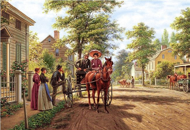 نخ و نقشه تابلو فرش طرح بعدازظهر یکشنبه (کدA1443) اثر ادوارد لامسون هنری---نقاش ژانر آمریکایی