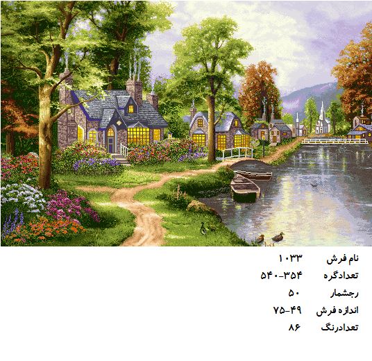 نخ و نقشه تابلو فرش طرح خانه زیبا کنار رودخانه (کد A10-333)