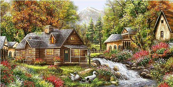 نخ و نقشه تابلو فرش طرح کلبه و رود (کد A1125)