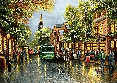 نخ و نقشه تابلو فرش طرح عصری در خیابان (کد A1127) اثر توماس کینکید
