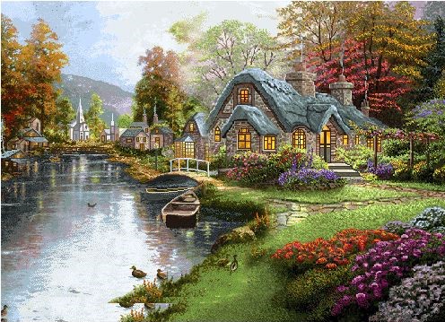 نخ و نقشه تابلو فرش طرح کلبه آرزوها (کدA847) اثر توماس کینکید۳٬۴۵۰٬۰۰۰ تومان