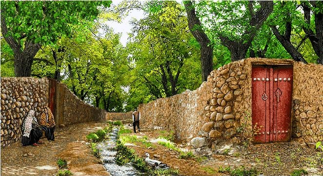 نخ و نقشه تابلو فرش طرح کوچه باغ روستایی (کد A739)۳٬۳۰۰٬۰۰۰ تومان
